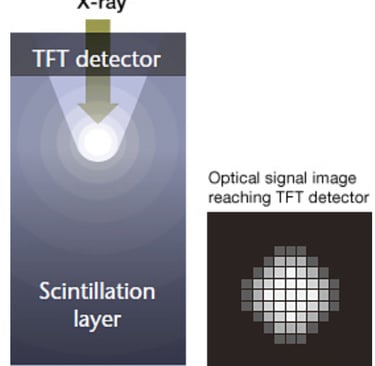 Berbeda dengan detektor konvensional, teknologi ISS menempatkan sensor optik di sisi depan detektor untuk menangkap sinyal cahaya lebih awal. Hal ini menghasilkan resolusi gambar yang jauh lebih tajam dan Signal-to-Noise Ratio (SNR) yang tinggi bahkan pada dosis radiasi rendah, memastikan akurasi diagnosis maksimal bagi radiolog tanpa mengorbankan keselamatan pasien.
